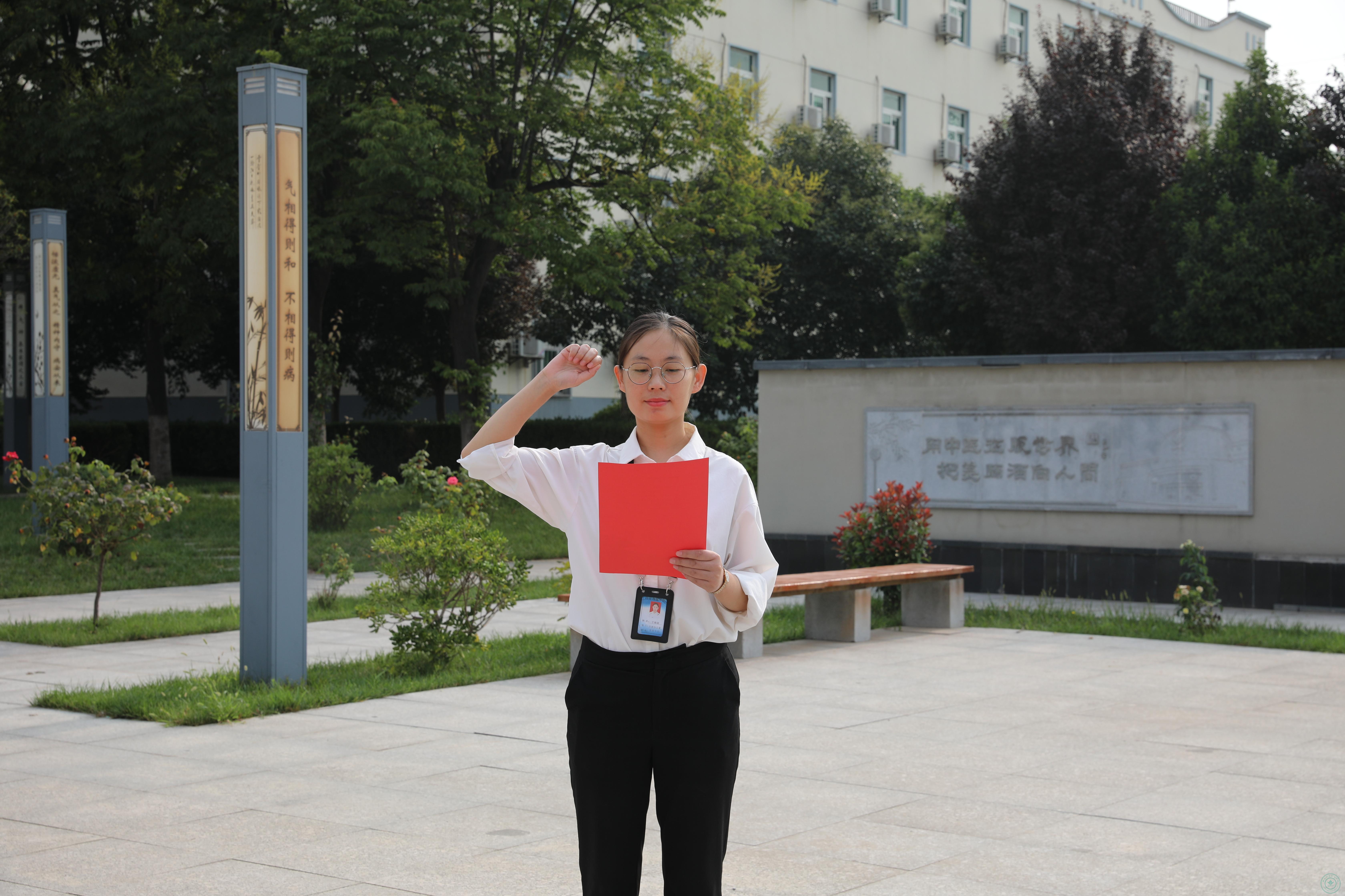 教师代表于晓喆领誓,全体教师庄严宣誓:
