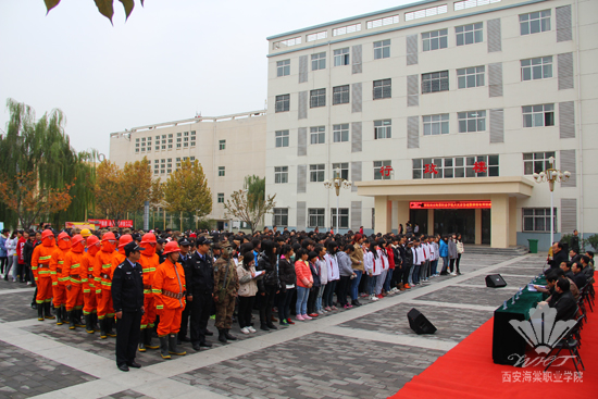 随着冬季的来临,气候变得干燥而寒冷,校园火灾以及安全隐患排查预防工作再次引起各高校的密切关注。为切实提升学院师生安全防火意识,增强全院师生面对火灾的应急处置能力,更好发挥平安校园这一长效机制的作用。11月11日下午16时,海棠学院保卫处在美学职校和技师学院的配合下,在全院范围内组织实施了一场模拟实战的火灾应急疏散演练活动,此次消防演练活动由学院副院长赵景利任总指挥,保卫处处长袁再胜任现场指挥。莅临消防演练现场的领导有职院院长冯居秦,党委书记冯齐昌,党委副书记王爱民,理事会秘书长何建华,职院副院长王景洪、程宇、吕博、赵景利、许春海,职院院长助理王文强,美学职校校长谢元龙,技师学院院长宋党助等,各二级学院院长、相关处室负责人及西安市公安局灞桥分局防火科鲁参谋、张干事也一同观摩了消防安全演练。