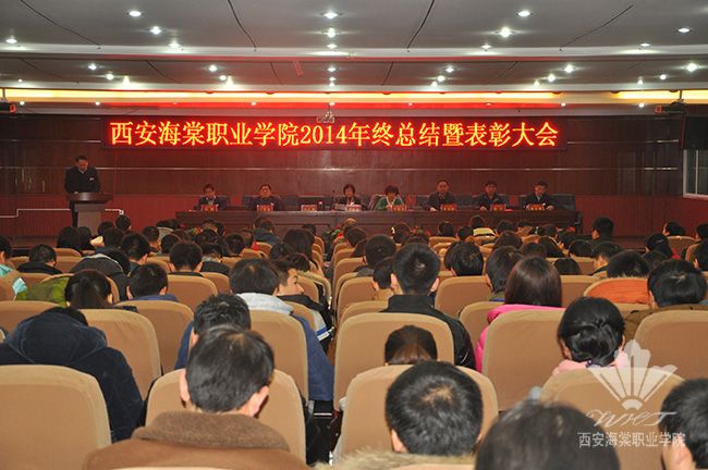 1月11日上午,学术报告厅内灯光璀璨,座无虚席,海棠职业学院在这里隆重举行2014年度总结暨表彰大会。出席本次大会的领导有学院院长冯居秦,党委书记张桂荣,财务总监李润堂,党委副书记、副院长吕博,副院长程宇、赵景利、许春海、王景洪。全院各处室领导干部及全体教职工参加会议。会议由吕博副院长主持。