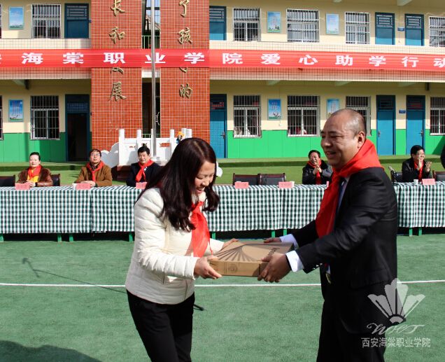 2015年1月19日下午14点,省政协常委、农工党陕西省委专职副主委王安龙,省政协副秘书长、农工党陕西省委会秘书长马鹏程,农工党省委社会服务部部长王建军等人在西安海棠医药科技集团董事长王卓的陪同下,前往位于商洛市洛南县城关镇东街小学参加“西安海棠职业学院爱心助学”捐赠活动。商洛市政协副主席、农工党商洛市委员会主委王书正,洛南县政协主席余金生,洛南县委常委、统战部部长支朝奇,洛南县政协副主席王新其、教体局局长贾优善等领导热情的接待了王安龙副主委和王卓董事长一行,双方在东街小学宽阔的操场上举行了爱心捐赠仪式,东街小学全体师生参加了活动,洛南县县长党建平主持了本次爱心助学捐赠活动。