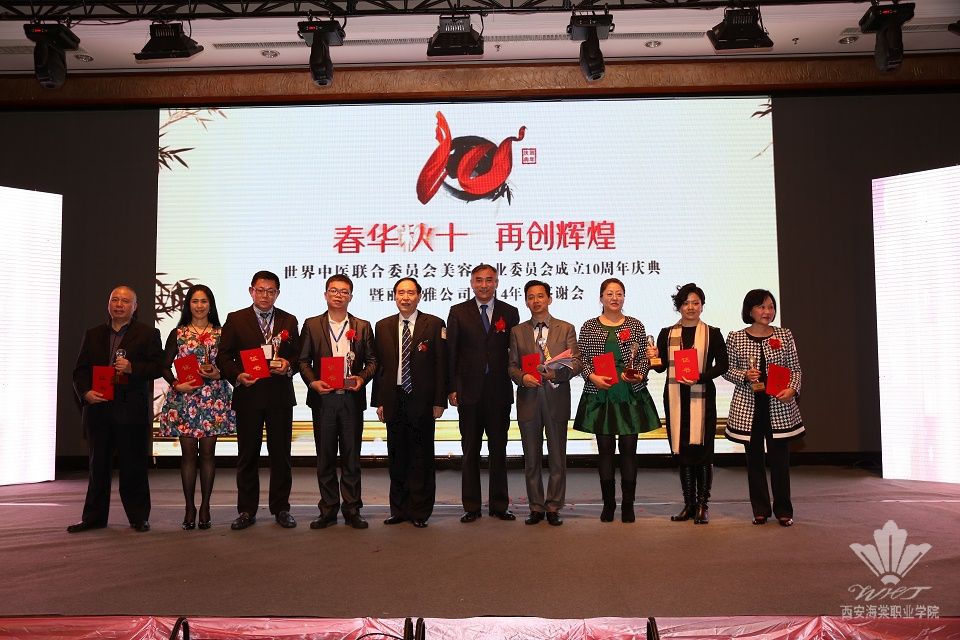 会上,世界中医药联合会美容分会会长姜再增首先汇报了美容专业委员会成立十周年以来所做的工作。随后,姜会长为十年来对中医美容事业做出突出贡献的7家单位、9名个人颁发奖杯和奖状,其中,西安海棠职业学院荣获“优秀集体”奖。