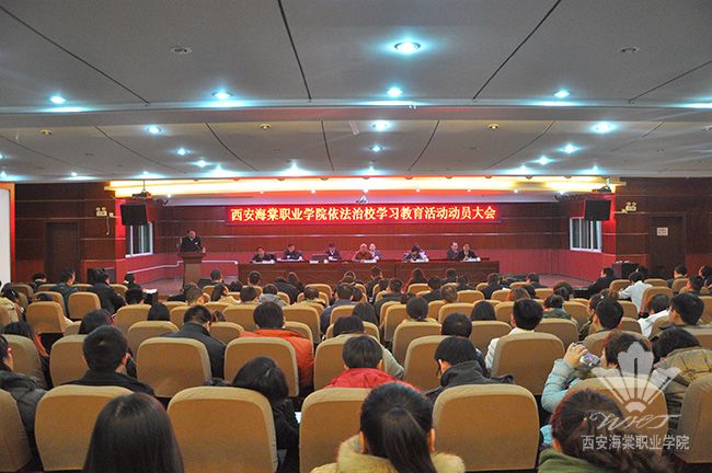 值此全国教育系统深入学习贯彻党的十八届四中全会精神、扎实推进依法治校学习教育活动的重要时期,12月9日下午,海棠职业学院在学术报告厅隆重举行依法治校学习教育活动动员大会。西安海棠医药科技集团董事长王卓,中共西安海棠职业学院党委书记张桂荣,海棠职业学院院长冯居秦,职业学院巡视员王爱民,副院长吕博、程宇、赵景利、许春海、王景洪,继续教育学院院长王文强出席会议。400余名教职员工参加会议。会议由学院党委副书记、副院长吕博主持。