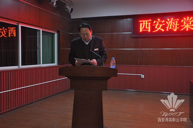 海棠职业学院院长冯居秦代表院党委宣读了《关于依法治校学习教育活动的安排意见》进一步明确了活动意义、活动内容、学习方法、活动时间、活动要求。招办主任王智锦代表海棠职业学院教职员工作表态发言,表示将组织招生处全体人员学习相关法律法规和政策,进一步健全并落实招生处的各项规章制度和岗位职责,规范招生人员的行为准则,依法招生、诚信招生。