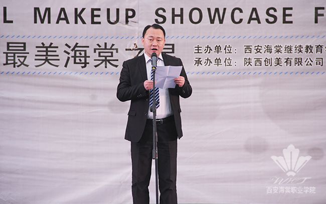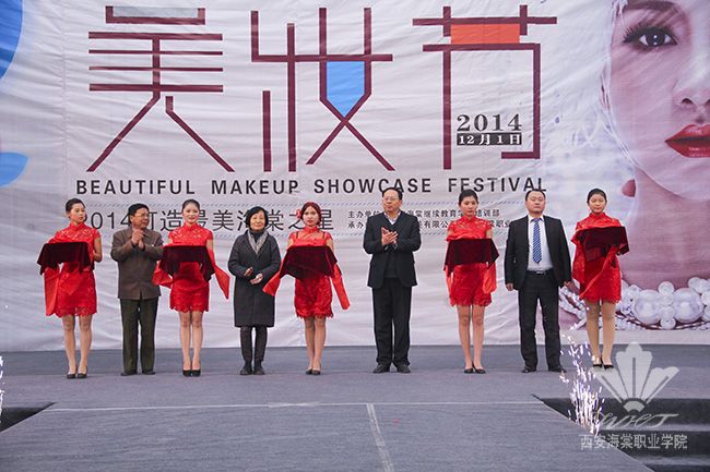 此次美妆节开幕式分为三个部分,首先由海棠继续教育学院院长王文强致美妆节开幕辞,同时王文强院长陪同海棠医药科技集团董事会秘书长何建华、西安海棠职业学院党委书记张桂荣、西安海棠职业学院院长冯居秦共同为开幕式剪彩——海棠美妆节正式启动。