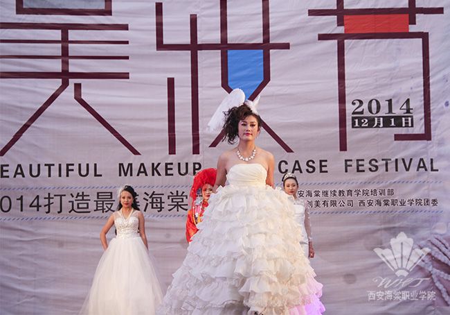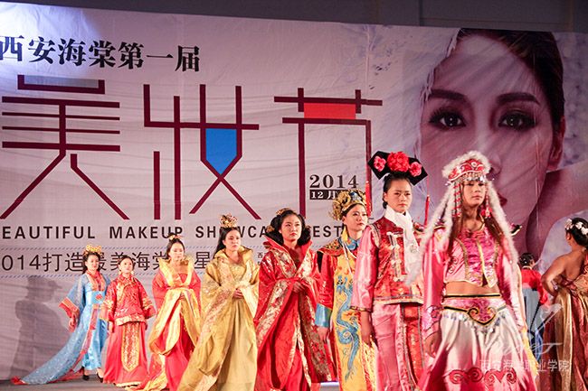 由西安海棠继续教育学院主办的海棠学院首届美妆节在海棠学院风雨操场盛大开幕,活动现场人头攒动,除了学院领导悉数到场外,还有冒着严寒的近3000名学生围观,可以看到现场几乎所有人都拿出自己的手机拍照、录像,接着就是微博、微信、朋友圈……大家都在记录着美丽瞬间,都想把化妆师缔造的独特妆容和华丽的服饰展现给自己所有的朋友——我们大海棠化妆师们技艺精湛,实力雄厚。