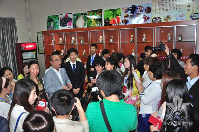 领略过海棠学子的风采后,企业代表在王卓董事长的亲自带领下依次进入医学美容实验实训中心参观。参观过程中王卓董事长不时驻足为企业代表讲解。在皮肤毛发诊断实训室,王卓董事长援引自己的生活实例,提出企业们要为每一个顾客建立一个细致的、完整的、关心入微的皮肤管理档案,让更多的消费者感受到企业优质的服务,从而使更多的消费者信赖企业、相信企业……王卓董事长的一番话赢得了在场企业代表一片赞许的掌声。每到一个实训中心王卓董事长都会精心地为企业代表讲解仪器设备的功效,与其说是参观实训中心,倒不如说是对现代中医美容理念的传播与交流。在王卓董事长讲解过程中很多企业代表纷纷拿出手机摄影、录像,将本次参观作为一次重要的学习机会。