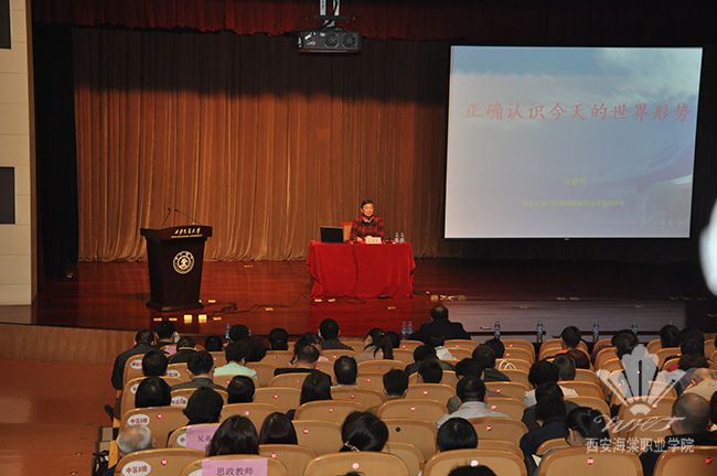4月22日下午,由陕西省委高教工委、陕西省大学生思政工作委员会组织的“形式政策专题讲座”在西安交通大学举行。本次讲座特邀国家创新与发展战略研究会常务副会长吴建民主讲了《正确认识今天的世界形势》内容。省高教工委的有关领导、省内各兄弟院校思政教师代表、交通大学学生代表,海棠学院党委思政部、宣传部教师应邀到场聆听讲座。