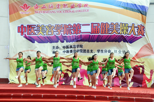 为了迎接西安海棠学院下周举行的健美操总决赛,近期各二级学院举行了如火如荼的初赛。5月20日中医美容学院健美操初赛在篮球场举行。中医美容学院院长高金虎,学生处副处长、团委书记张杰等领导出席大赛。学生科科长栗兴愿、年级组长袁丁、体育老师杜婵等担任大赛评委。