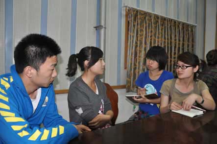 参观完后,记者与学院领导在会议室进行了交流。《华商报》教育健康部主任穆同对学院内涵发展给予了肯定,并提出了宝贵的意见。学院领导就记者提出的海棠的特色办学、内涵建设、校企结合、学生就业、海棠特色如何保持下去、中医美容如何传承等方面问题做了推心置腹得解答,并希望能够借助传媒的力量做好民办教育的宣传工作。记者一致认为,只有走进海棠,才能够探寻到海棠的魅力所在。