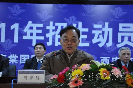 首先,冯齐昌书记代表学院致开幕词。冯书记认真分析了我院2011年招生工作利与不利的市场形式,针对我院2011年的招生现实状况,提出了几点科学化、合理化的建议。并希望全体教职员工以“海棠发展,我的责任”为理念,积极参与招生、支持招生。