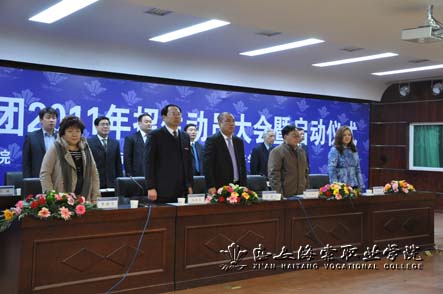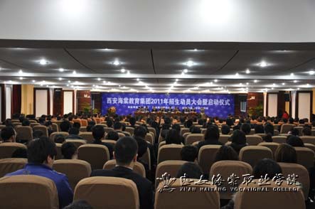 西安海棠教育集团2011年招生动员大会暨启动仪式在一阵欢呼声中取得圆满成功。与会员工表示,一定会积极响应学院号召,以学院发展为大局,自觉服从招生领导小组安排,紧密团结在各招生组组长周围,认真完成2011年招生任务。