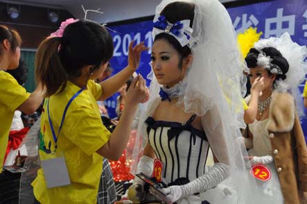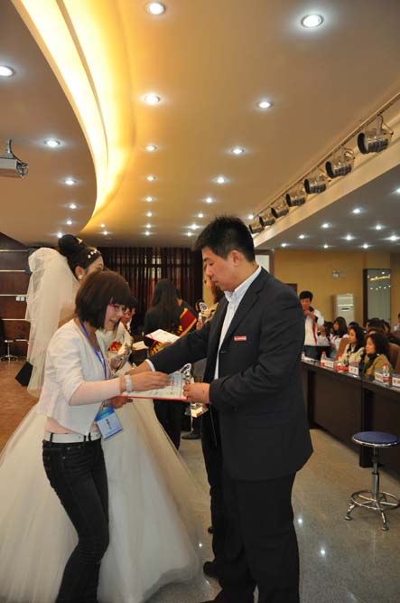 上午10时,比赛正式开始,20名参赛选手开始对自己“素面朝天”的模特进行造型设计。各参赛选手胸有成竹、细心描绘。紧张的比赛结束,一个个清新亮丽、风采各异的“新娘”展现在了评委面前。各参赛选手分别对自己的造型设计进行了简单的描述,评委也根据模特所呈现出来的装束进行了点评、打分,并提出了宝贵的意见。比赛结束,陕西金地美容美发培训学院朱馨月同学以她独特、清新、自然的造型获得本场比赛冠军。