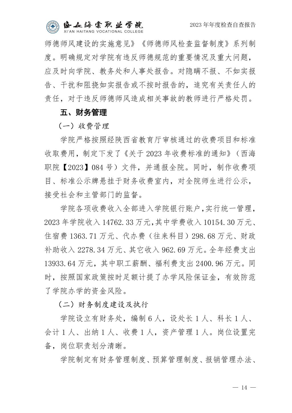 西安海棠职业学院2023年度自查报告